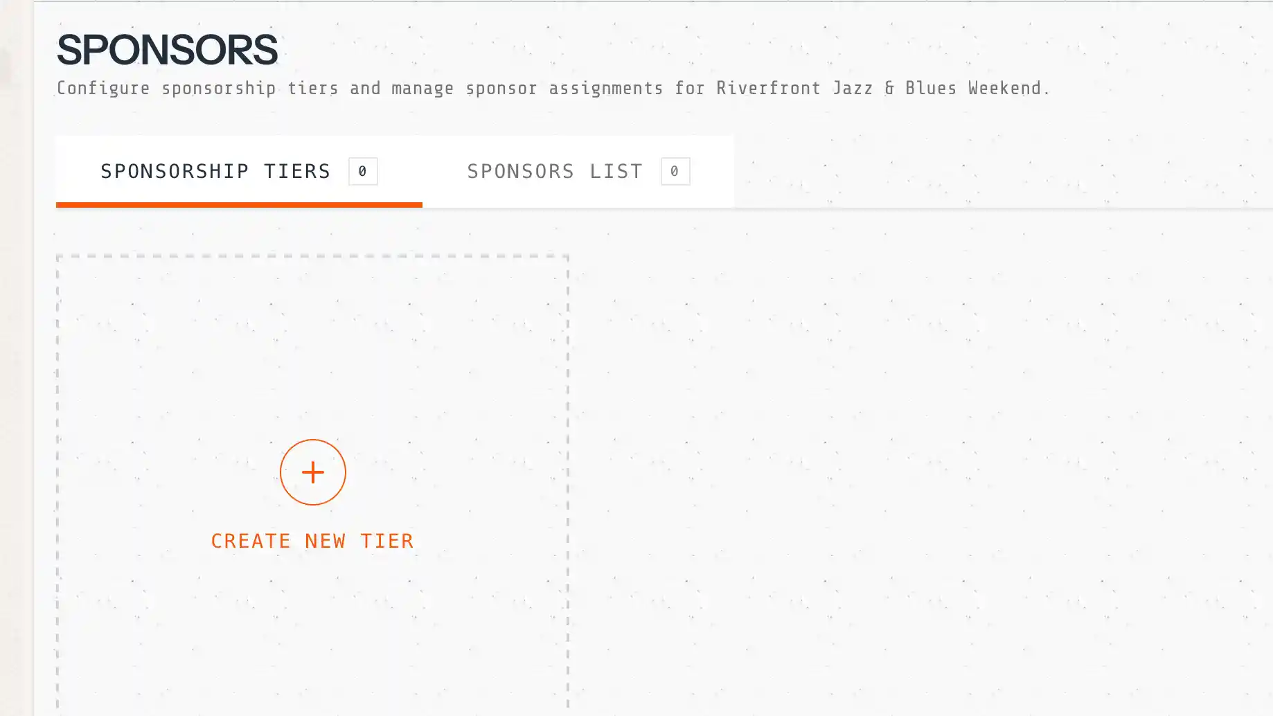 Sponsors discover tiers on the public event page, reserve a tier, create an account, complete a short profile, and submit their request for approval. It is quick and guided.